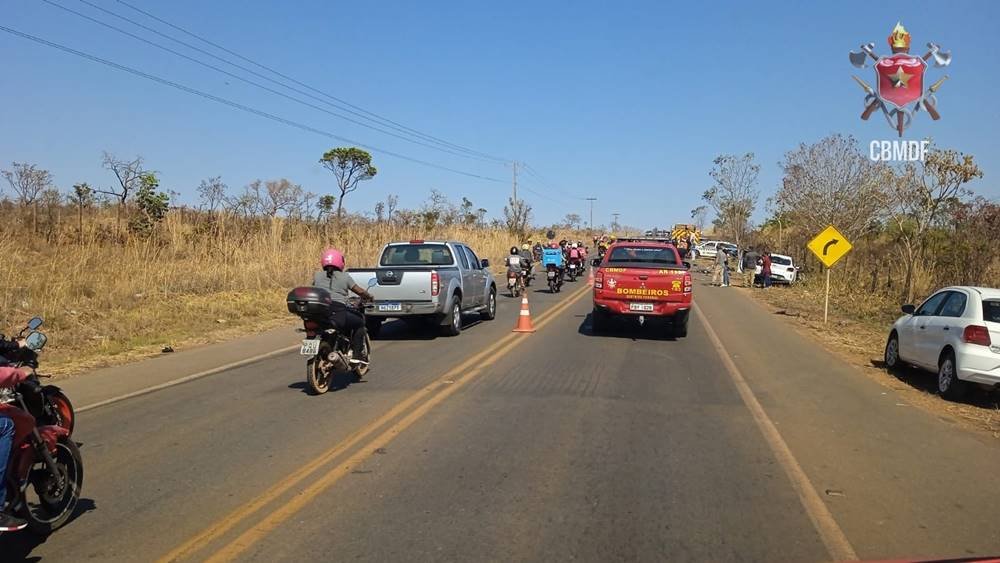O Corpo de Bombeiros Militar do Distrito Federal (CBMDF) foi acionado por volta das 8h30 para atender as vítimas. No entanto, quando as equipes chegaram ao local da colisão, encontraram a motociclista sem vida. Outras duas mulheres, condutoras dos veículos de passeio, também ficaram feridas e foram encaminhadas ao hospital conscientes, orientadas e estáveis.